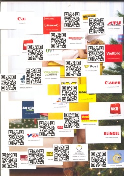 The campaign, was designed to promote APS’ online services and deliver people exclusive offers and deals from brands. Specifically, a letter-sized advent calendar containing 24 windows was sent to 3.5 million households in Austria before the start of the holiday season. Each window contained a brand logo and a web address, and most windows featured an embedded 2D barcode people could scan to access deals, discounts and sweepstakes. (The campaign also provided people a SMS short-code that they could text to get a link and download NeoMedia’s NeoReader barcode scanning application.)